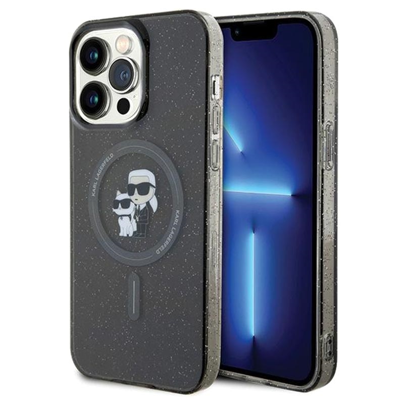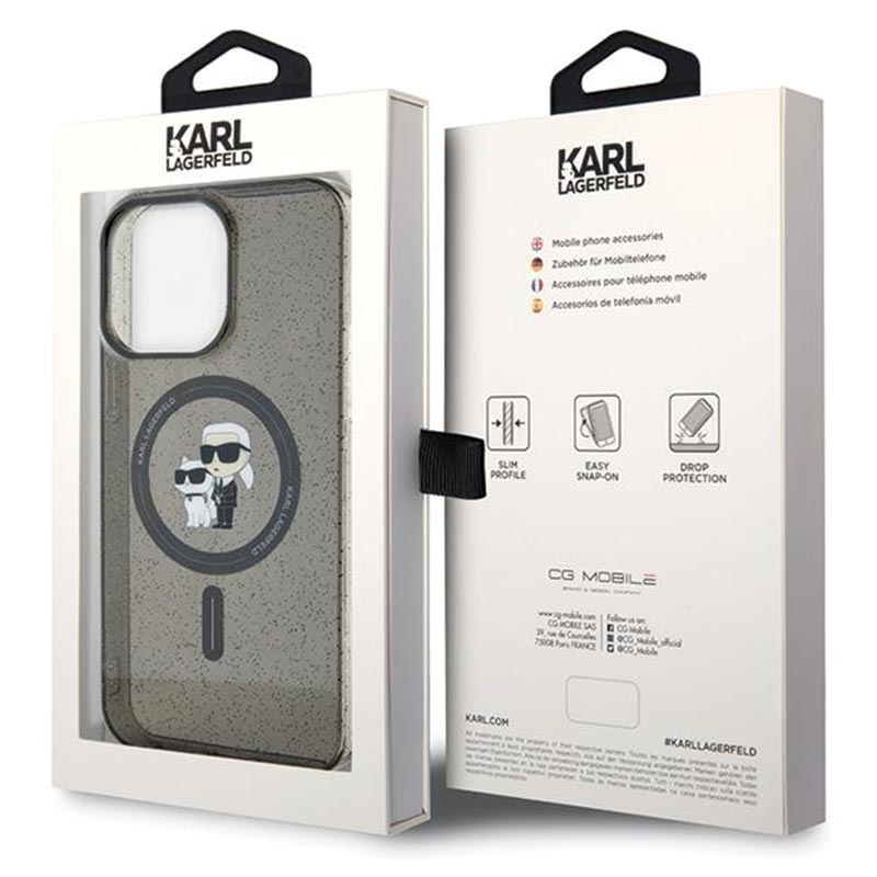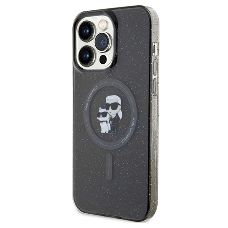 iPhone 15 Pro Karl Lagerfeld IML Glitter Karl & Choupette MagSafe Case - Schwarz