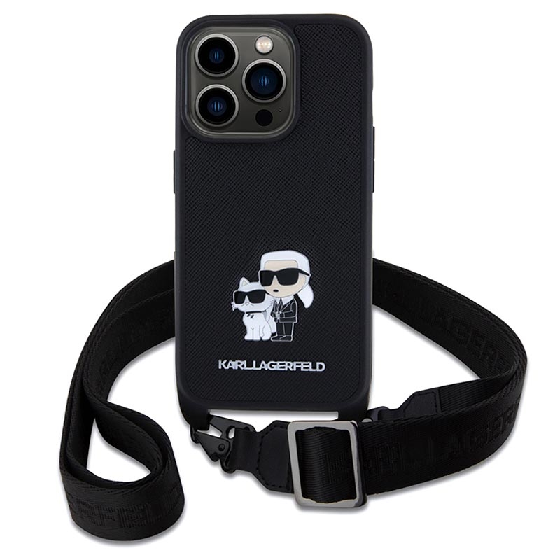 - Karl Lagerfeld Saffiano Crossbody Metal Karl & Choupette Hülle für iPhone 15 Pro