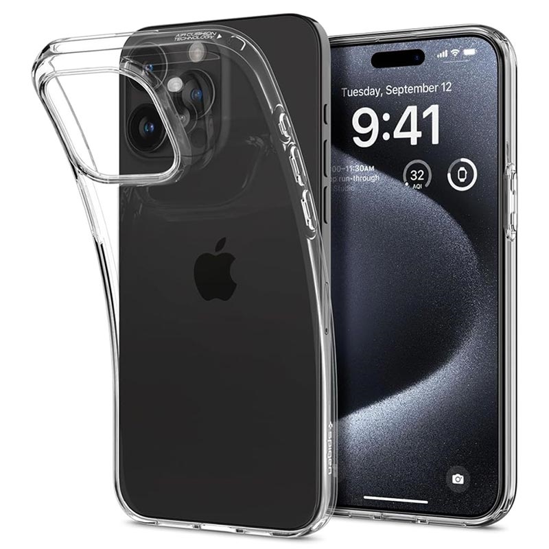 - Das Spigen Liquid Crystal Cover lässt Ihr iPhone 15 Pro Max durchscheinen
