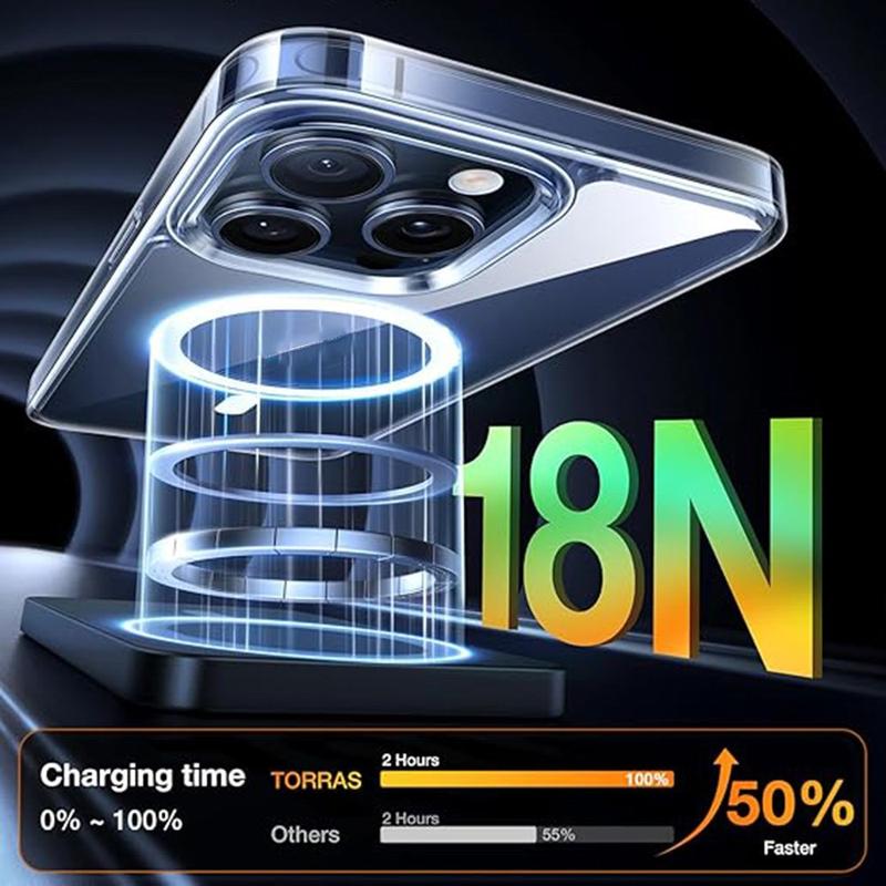 Die Torras MagSafe-kompatible transparente TPU-Hülle für das iPhone 15 Pro Max kombiniert Stil, Schutz und Funktionalität und ist damit die perfekte Wahl für Benutzer, die eine schlanke, robuste Hülle wünschen, die das Design ihres Telefons unterstreicht und gleichzeitig MagSafe-Komfort bietet.
