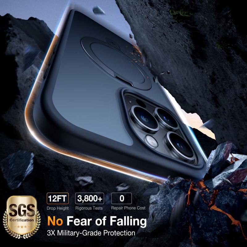 Schieben Sie diese elegante Hülle auf Ihr iPhone 15 Pro und erhalten Sie drei wichtige Funktionen in einem: felsenfeste MagSafe-Ausrichtung, einen klappbaren Metallständer für freihändiges Betrachten und SGS-zertifizierten Schutz vor Stürzen - und das alles ohne Abstriche bei der taschenfreundlichen Schlankheit.