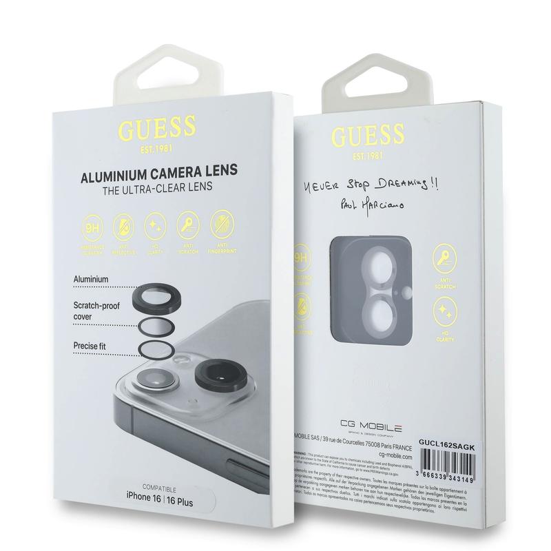 iPhone 16/16 Plus Guess Aluminium Kamera-Objektivschutz - Schwarz