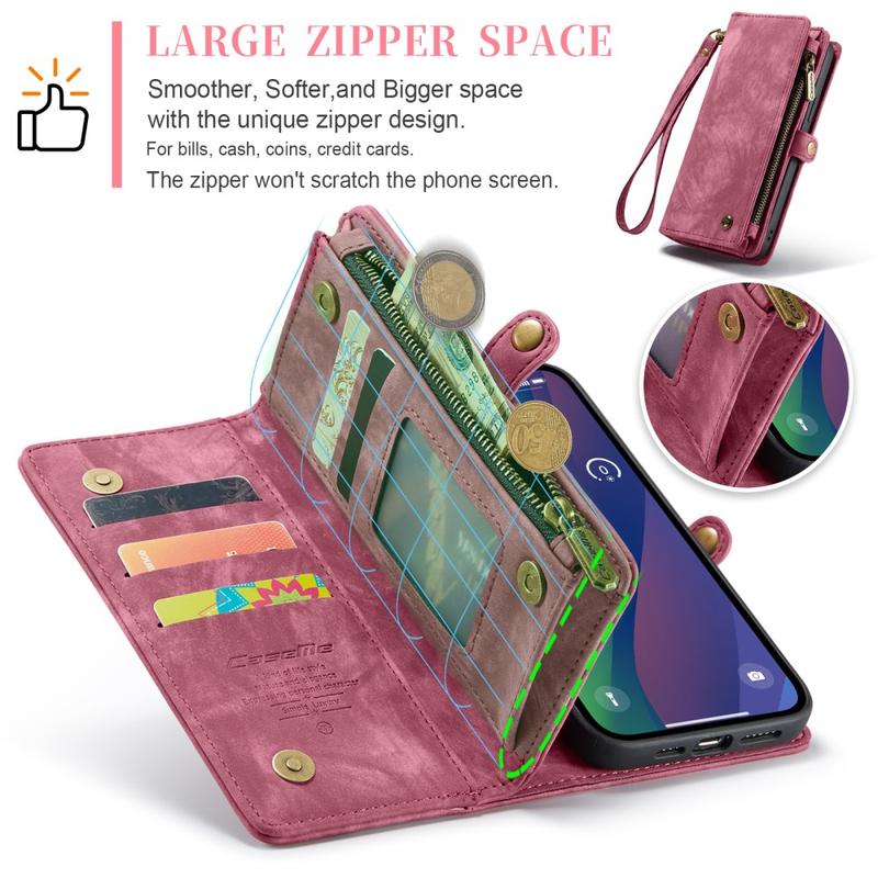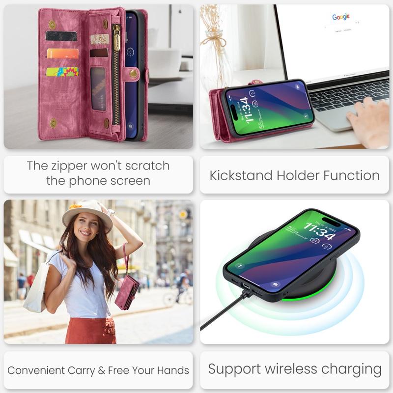 Machen Sie Ihren Tag supereffizient mit der Caseme 008 2-in-1 iPhone 16 Wallet Tasche.