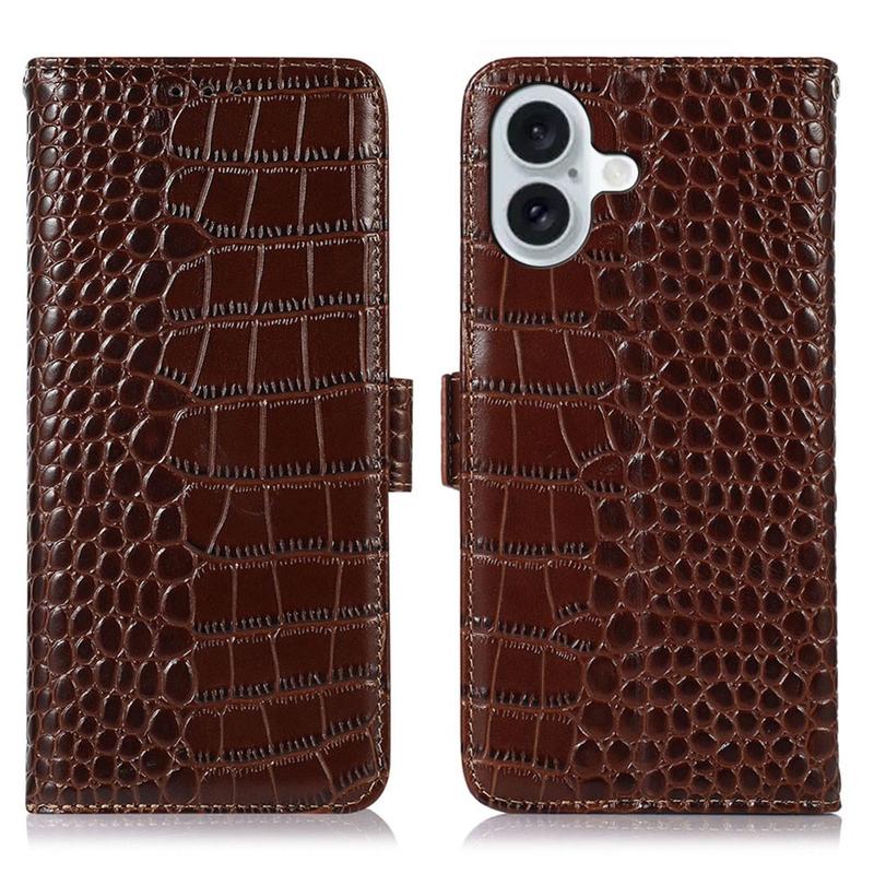 Crocodile Serie Lederhülle mit Geldbörse mit RFID für iPhone 16