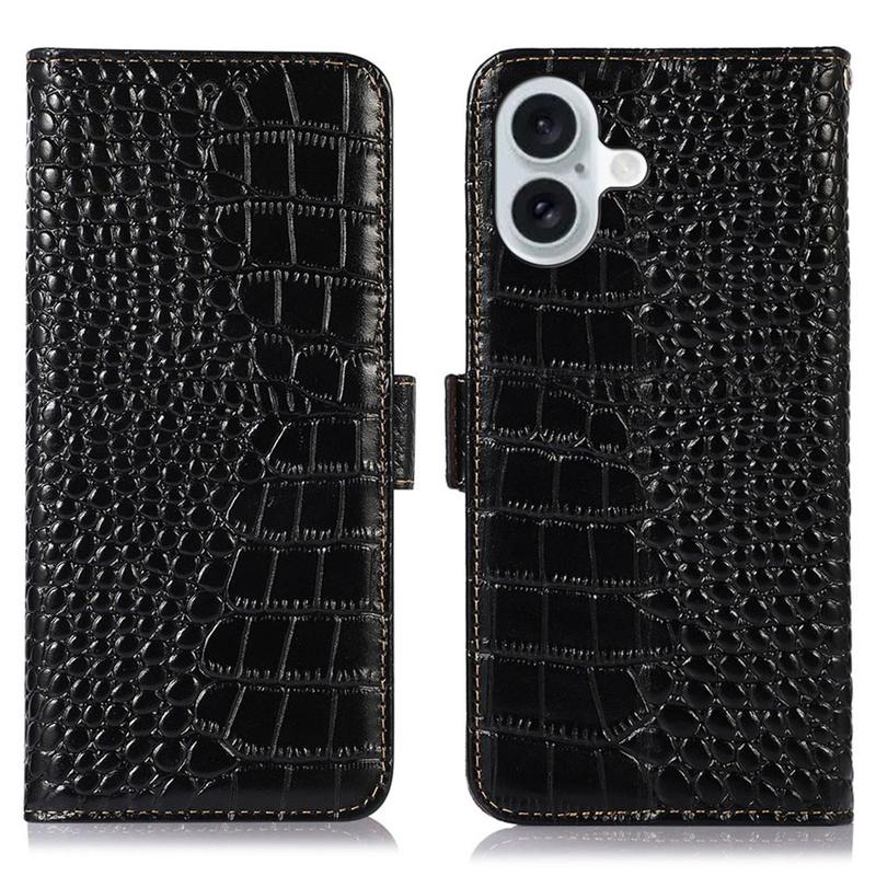 Crocodile Serie Lederhülle mit Geldbörse mit RFID für iPhone 16