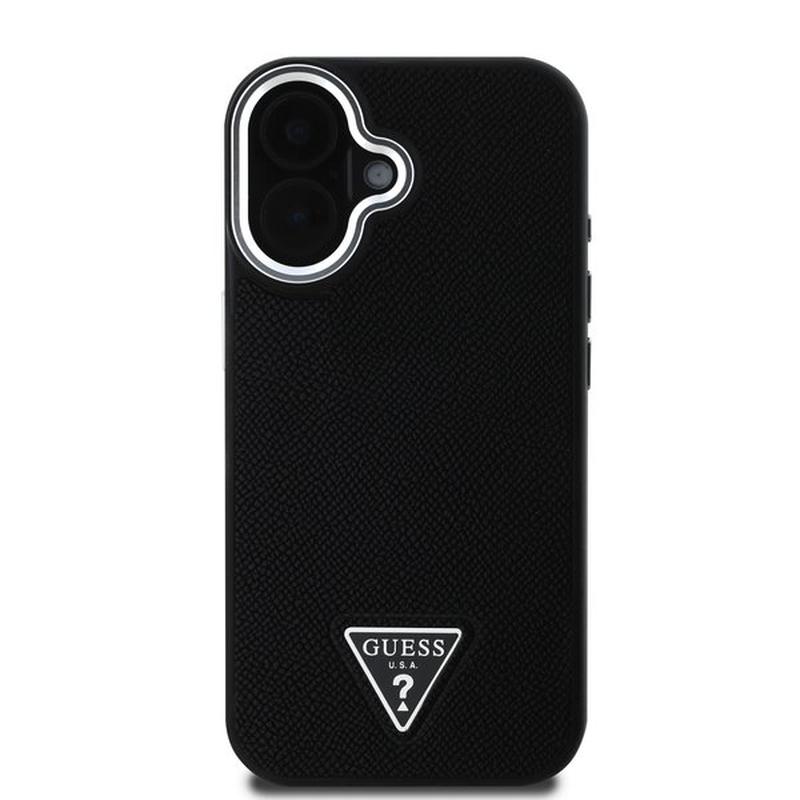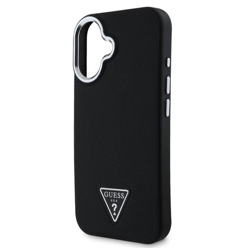 iPhone 16 Guess Grained Triangle Logo Hülle - MagSafe-kompatibel - Schwarz