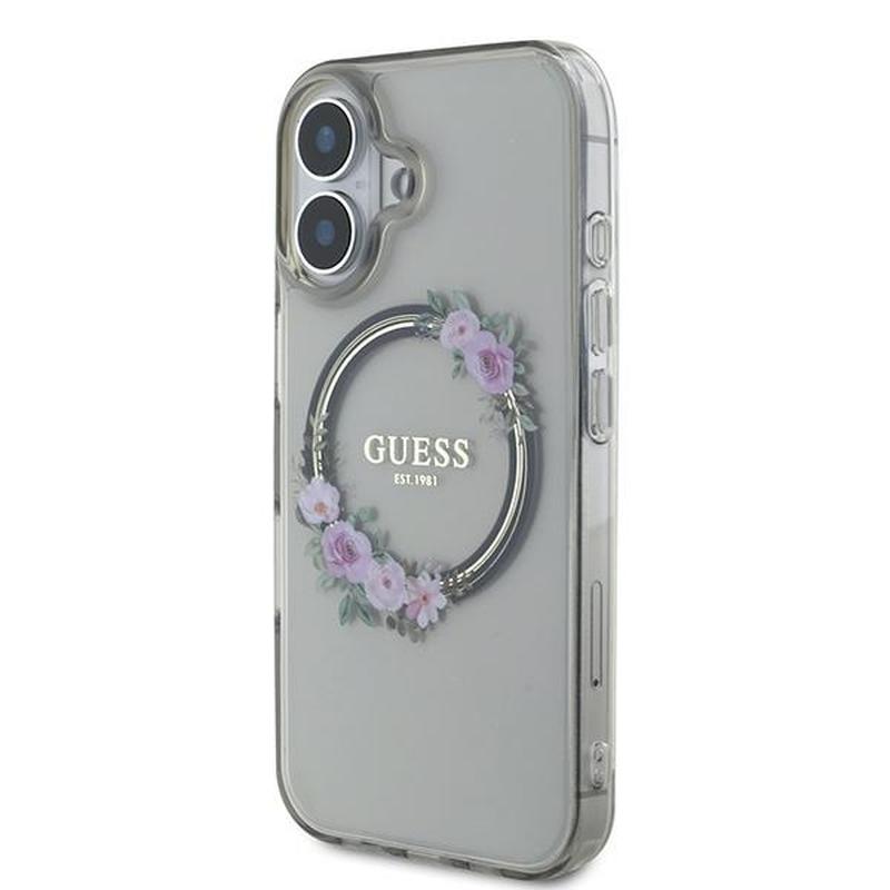 Guess IML Flowers Wreath Hülle für iPhone 16 - MagSafe-kompatibel