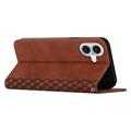 iPhone 16 Plus Brieftaschenhülle mit Rautenmuster mit Magnetverschluss - Braun