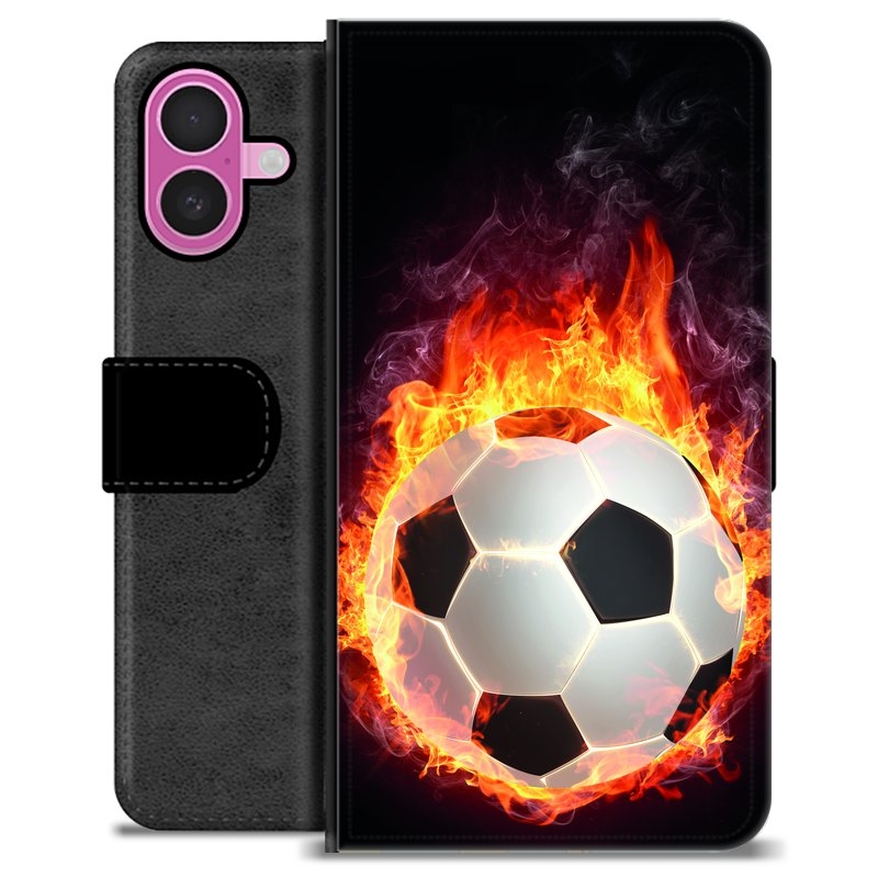 iPhone 16 Plus Premium Schutzhülle mit Geldbörse - Fußball Flamme