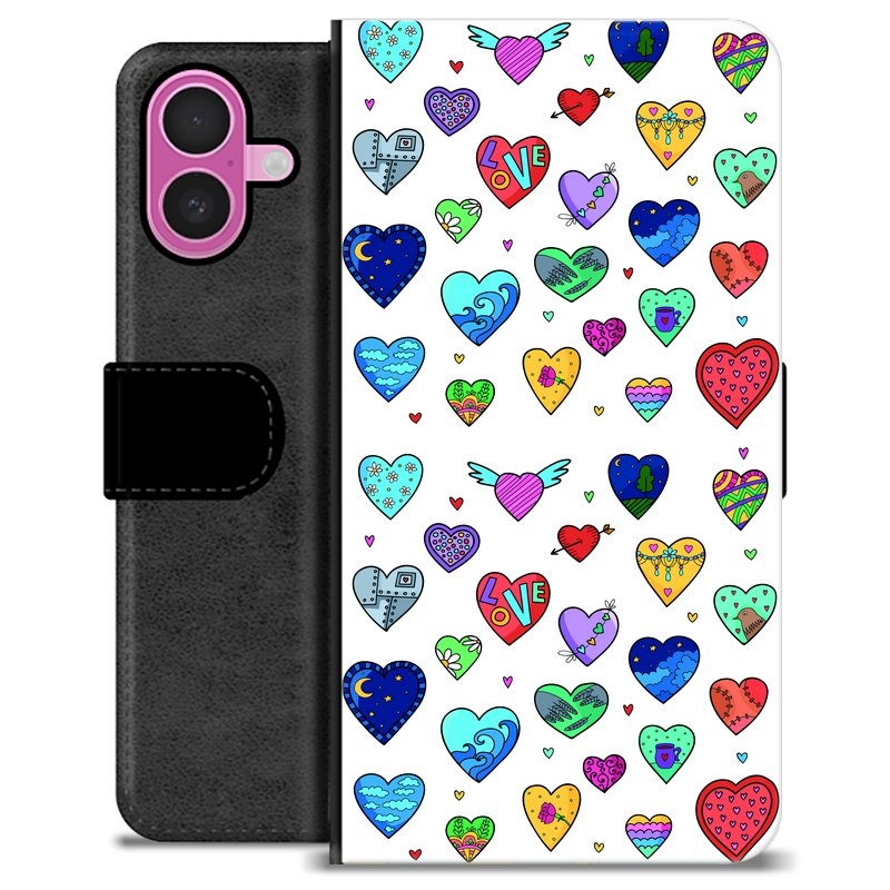 iPhone 16 Plus Premium Schutzhülle mit Geldbörse - Herzen
