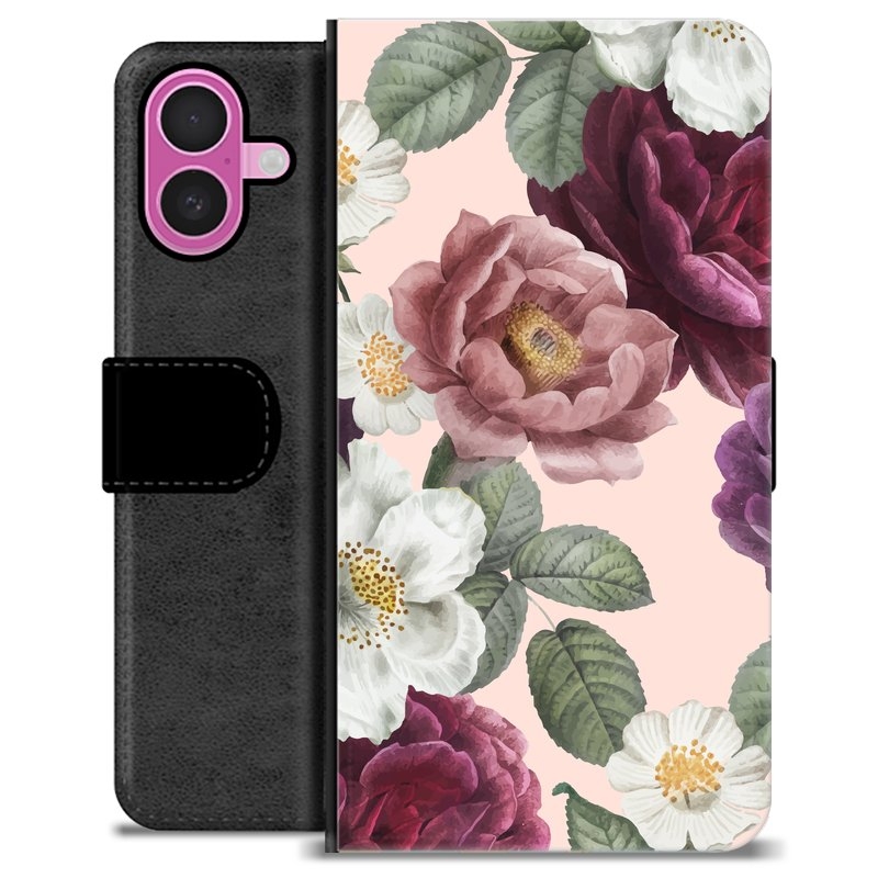 iPhone 16 Plus Premium Schutzhülle mit Geldbörse - Romantische Blumen