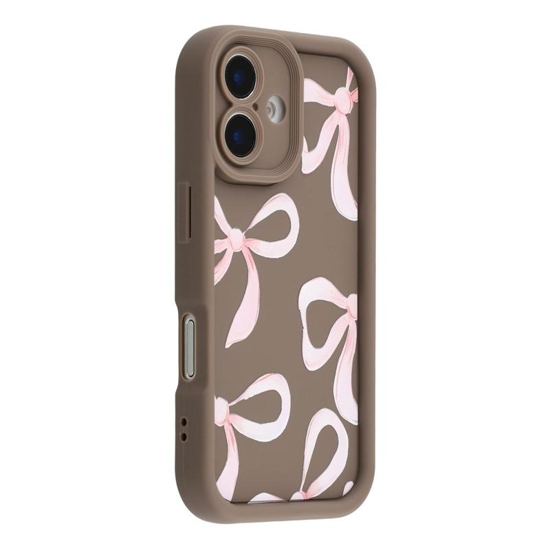 iPhone 16 Plus Stilvolle stoßfeste TPU-Hülle mit erhöhten Rändern - Braun / Große Schleife