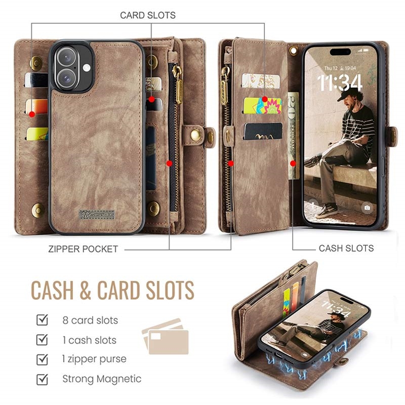Caseme 008 2-in-1 Multifunktions Wallet Hülle für iPhone 16 Plus
