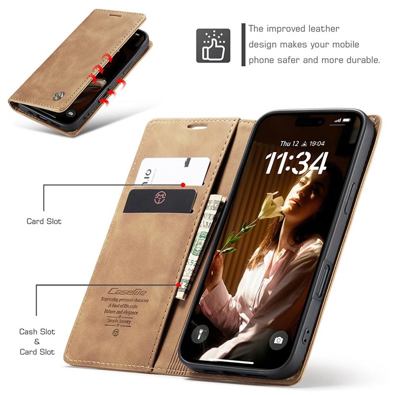 - Eingebaute Magnete halten die Caseme 013 Series Wallet-Hülle geschlossen
