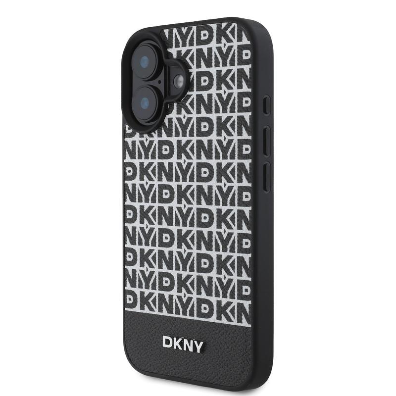 iPhone 16 Plus DKNY Repeat Pattern Bottom Stripe Hülle - MagSafe kompatibel - Schwarz