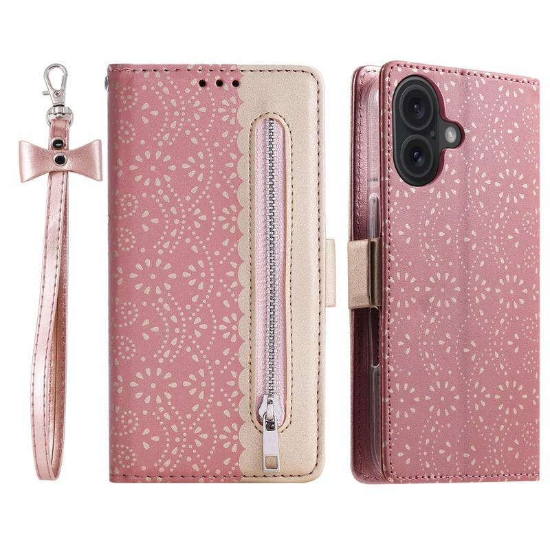 Lace Pattern Schutzhülle mit Geldbörse für iPhone 16 Plus