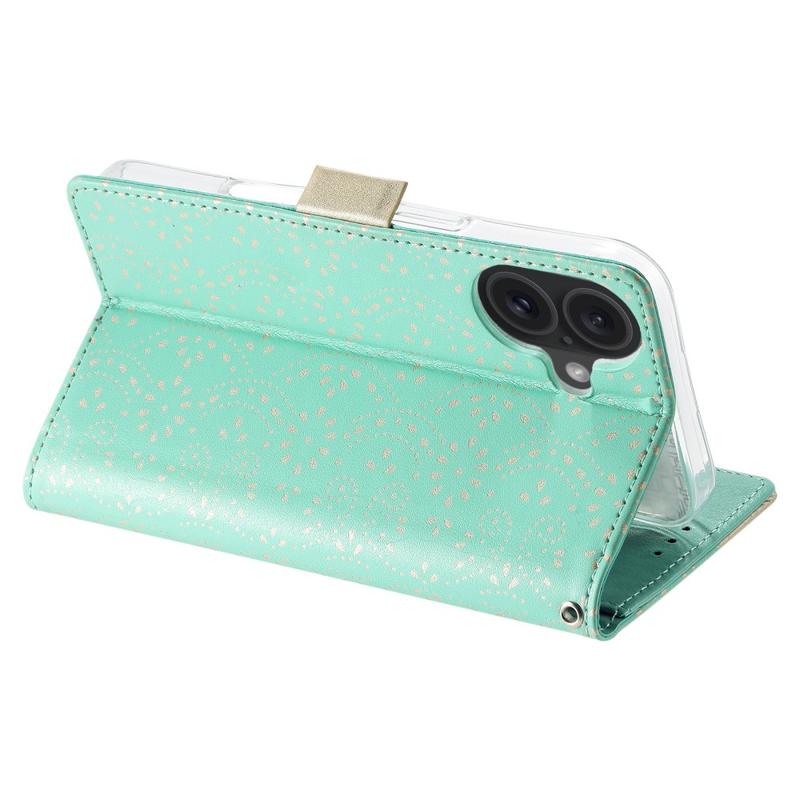 iPhone 16 Plus Lace Pattern Schutzhülle mit Geldbörse - Mintgrün