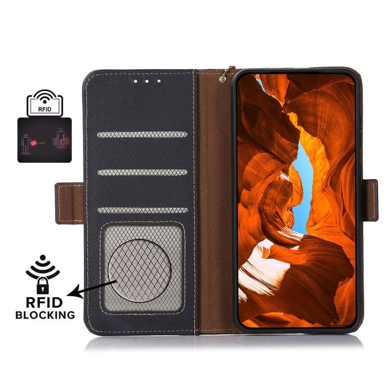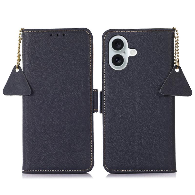 - Brieftaschen-Ledertasche mit RFID-Blockierungsschicht für iPhone 16 Plus