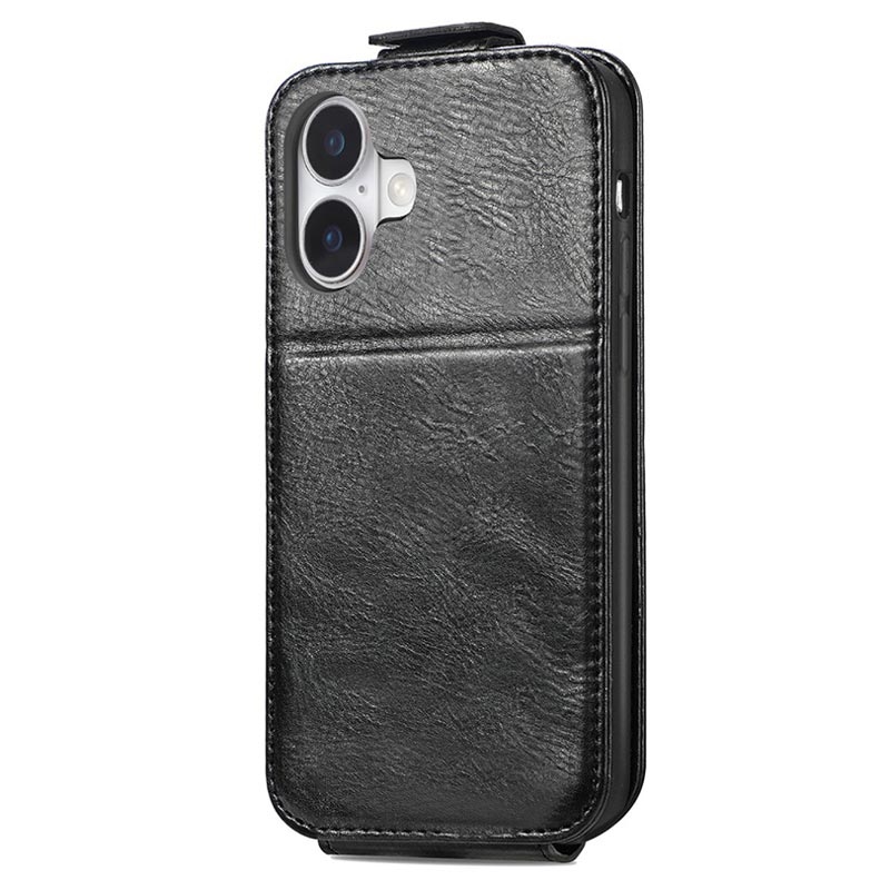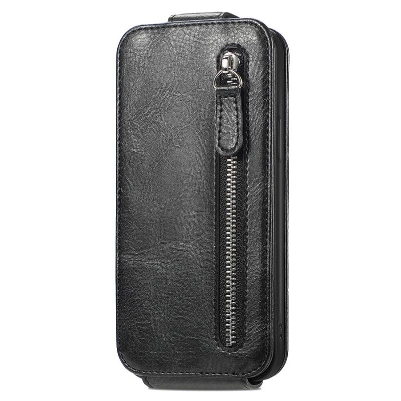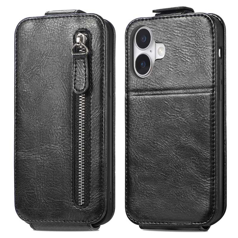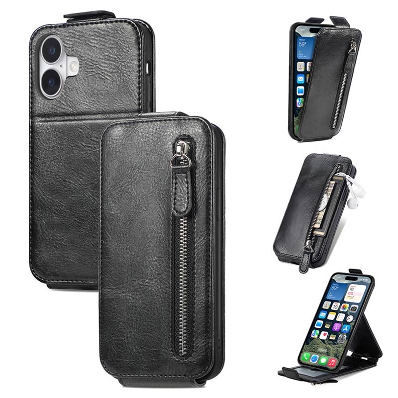 iPhone 16 Plus Reißverschlusstasche Vertikales Flip Hülle - Schwarz