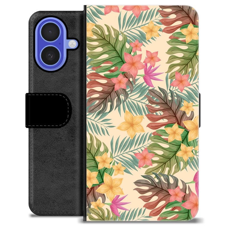 iPhone 16 Premium Schutzhülle mit Geldbörse - Pinke Blumen