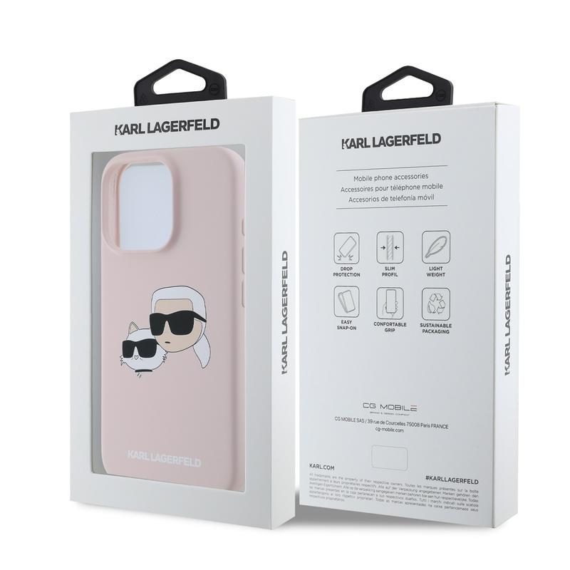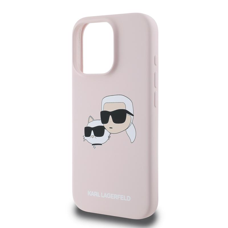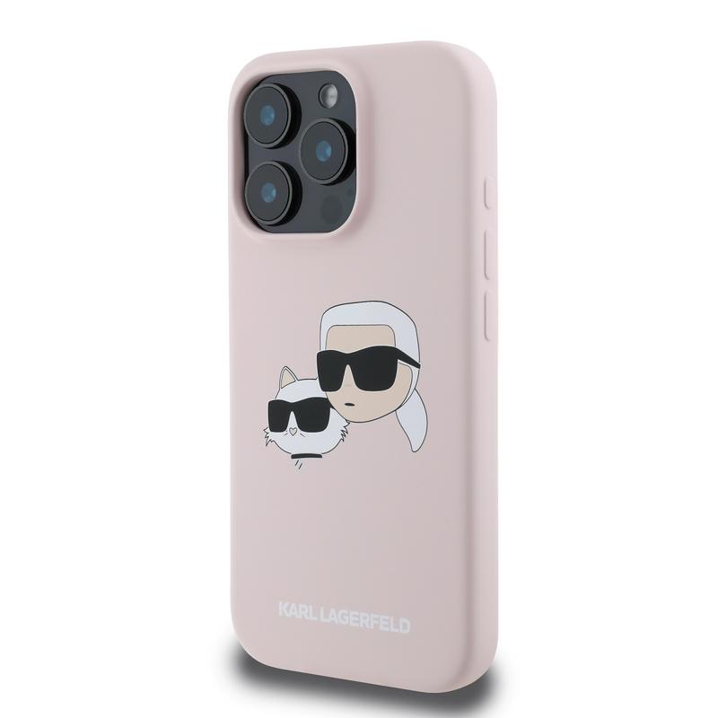 iPhone 16 Pro Karl Lagerfeld Double Heads MagSafe Flüssiges Silikongehülle - rosa