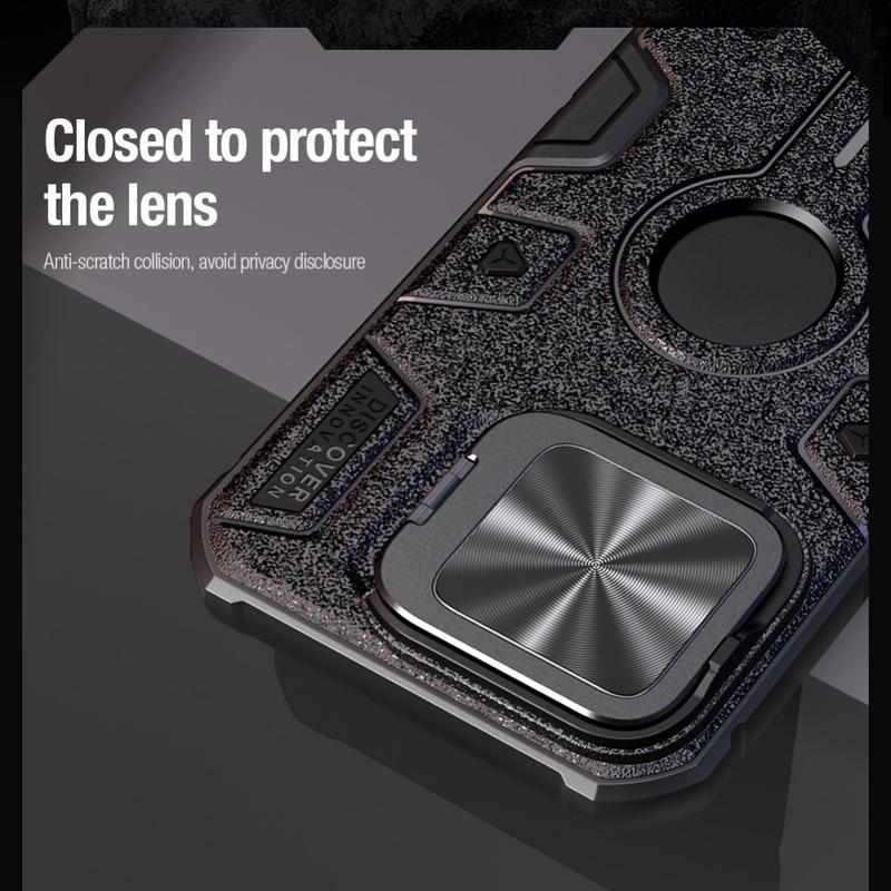 Das Nillkin CamShield Armor Prop Case für das iPhone 16 Pro Max bietet mit seiner robusten PC- und TPU-Konstruktion hervorragenden Schutz. Es verfügt über eine verschiebbare Kameralinsenabdeckung, um Ihre Kamera vor Kratzern und Staub zu schützen. Diese Hülle ist außerdem MagSafe-kompatibel und ermöglicht drahtloses Aufladen und die Befestigung von MagSafe-Zubehör. Dank des stabilen Ständers können Sie die Kamera freihändig bedienen. Das schlanke Design verleiht Ihrem iPhone 16 Pro Max einen eleganten und funktionalen Touch.
