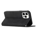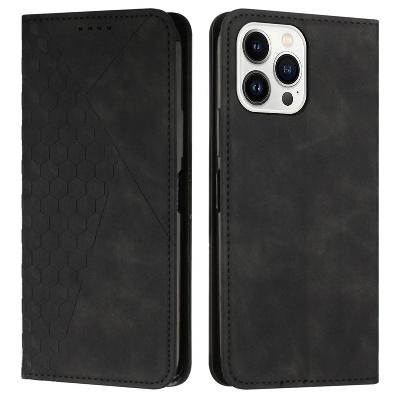 iPhone 16 Pro Max Brieftaschenhülle mit Rautenmuster mit Magnetverschluss - Schwarz
