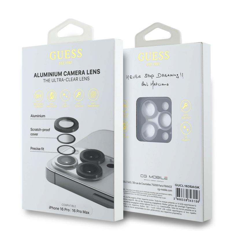 Guess Aluminium Kameraobjektivschutz für iPhone 16 Pro, iPhone 16 Pro Max