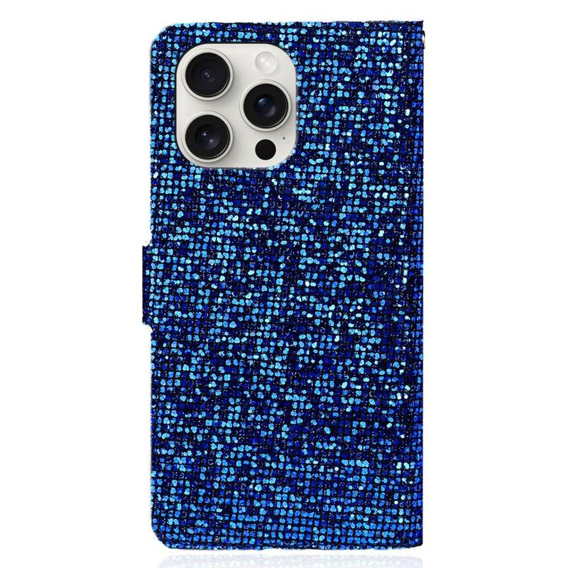 iPhone 16 Pro Stilvolle Glitzer Wallet Hülle - blau