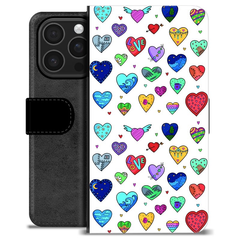 iPhone 16 Pro Premium Schutzhülle mit Geldbörse - Herzen