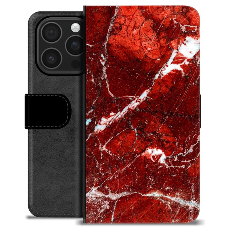 iPhone 16 Pro Premium Schutzhülle mit Geldbörse - Roter Marmor