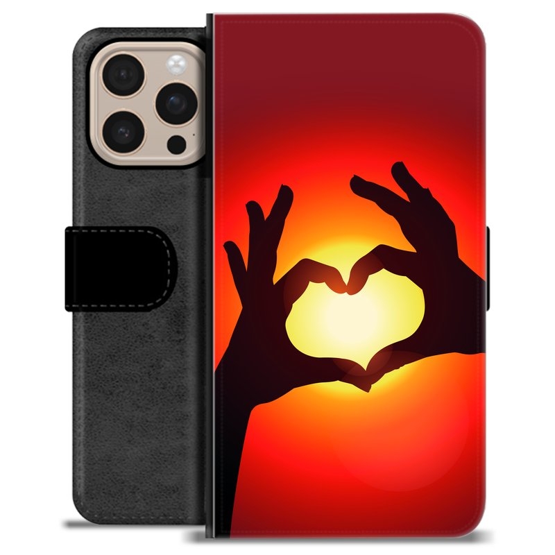 iPhone 16 Pro Max Premium Schutzhülle mit Geldbörse - Herz-Silhouette