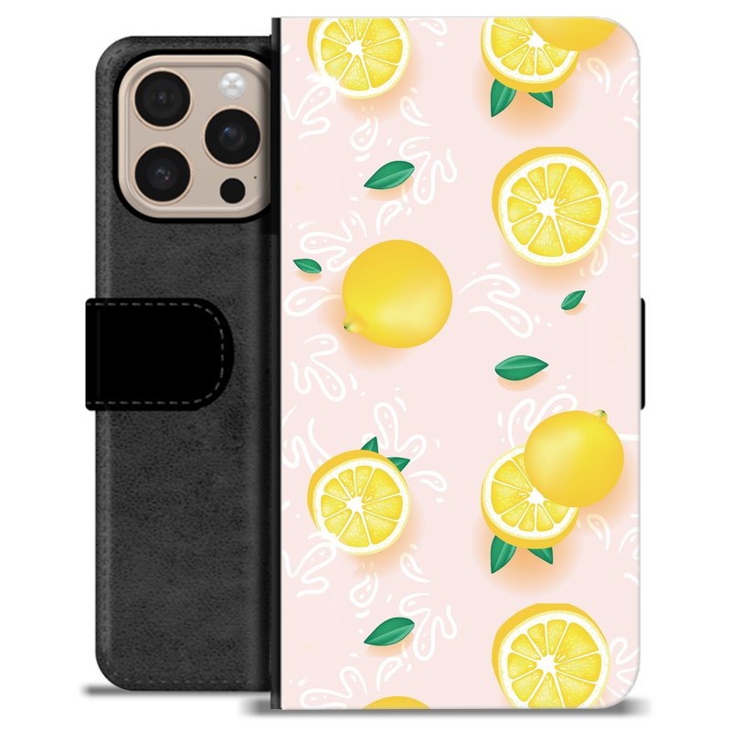 iPhone 16 Pro Max Premium Schutzhülle mit Geldbörse - Zitronen-Muster