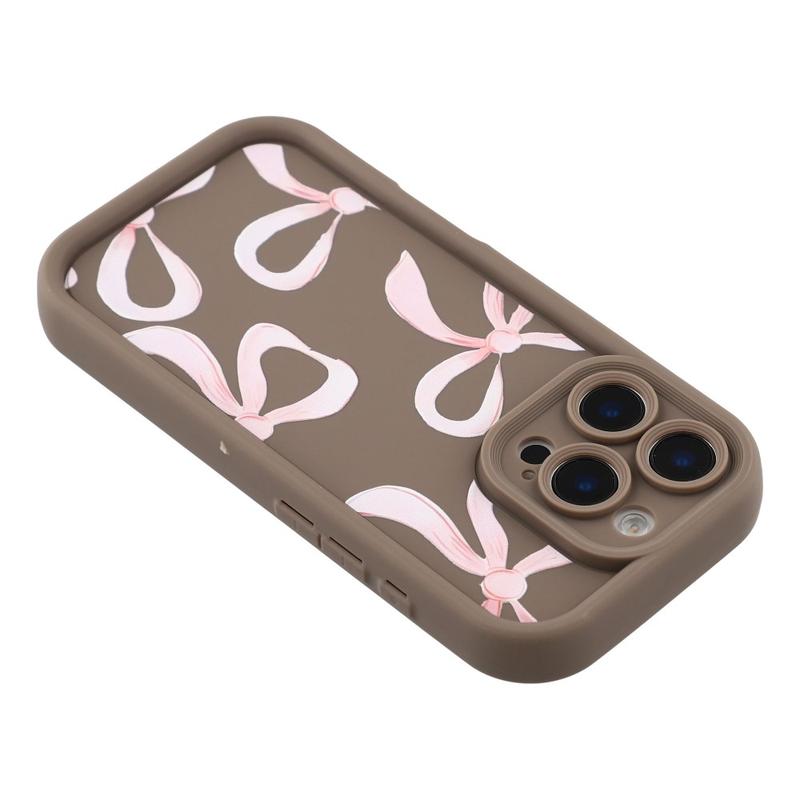 iPhone 16 Pro Max Stilvolle stoßfeste TPU-Hülle mit erhöhten Rändern - Braun / Große Schleife