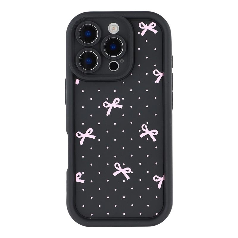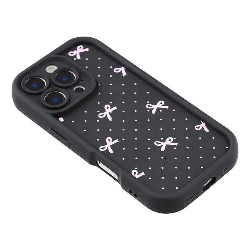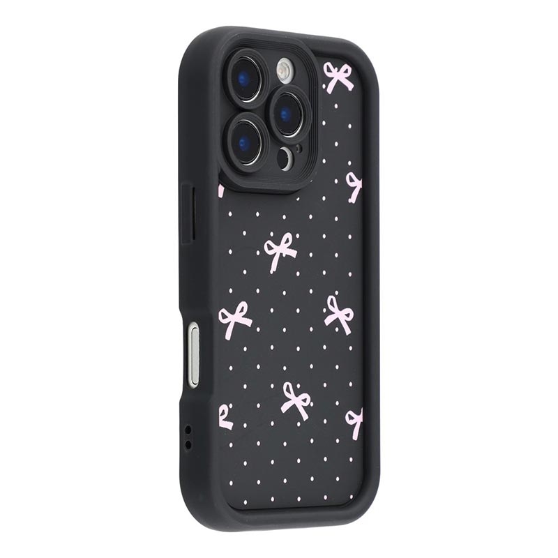 iPhone 16 Pro Stilvolle stoßfeste TPU-Hülle mit erhöhten Kanten - Schwarz / Gepunktete Schleife
