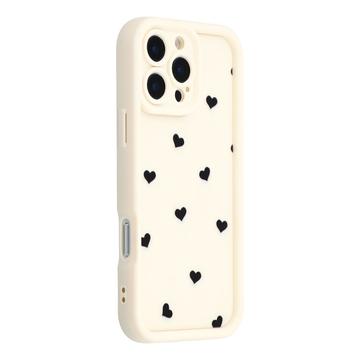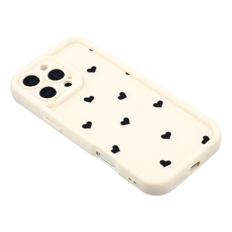 iPhone 16 Pro Max Herz-Muster stoßfest TPU Hülle mit erhöhten Kanten - weiß