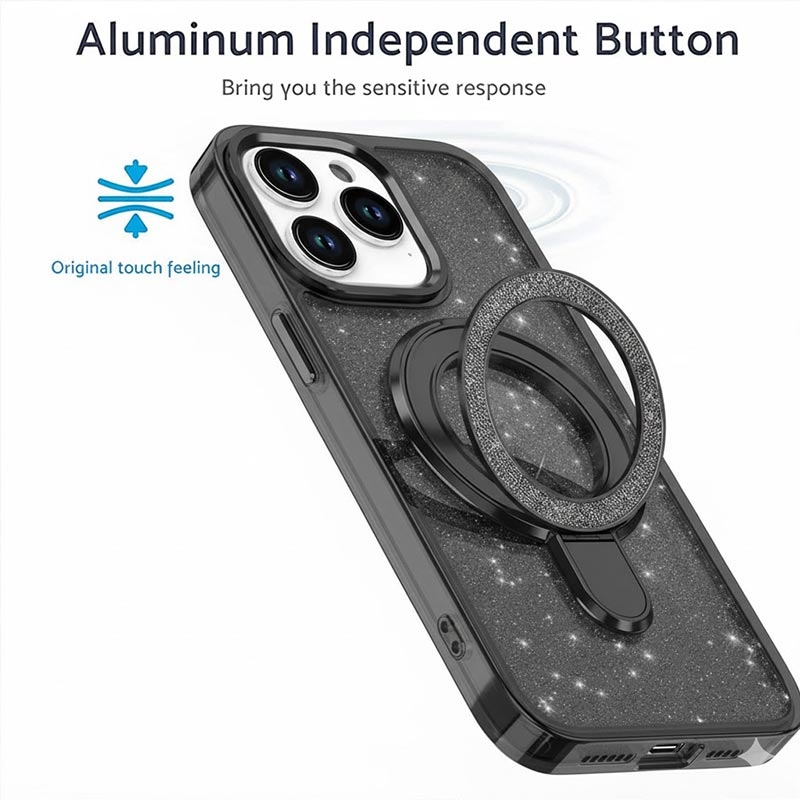 Glitter Hülle mit Kickstand für iPhone 16 Pro Max - MagSafe kompatible TPU + PC Hybrid Kickstand Cover
