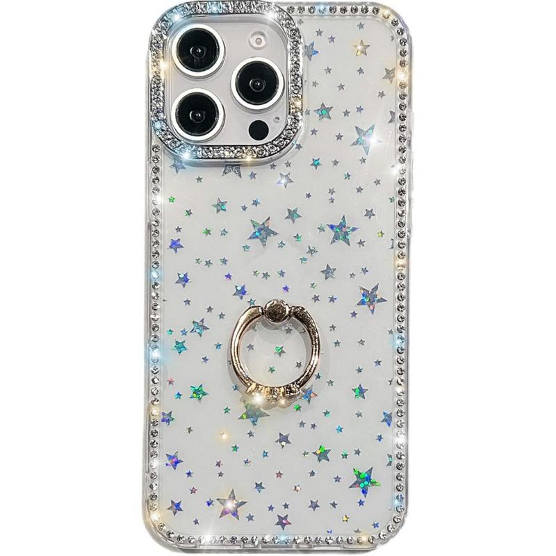 Verleihen Sie Ihrem iPhone 16 Pro sofortige Starqualität und zuverlässigen Schutz im Alltag. Dieses schlanke Hybrid-Cover umhüllt Ihr iPhone 16 Pro mit schimmernden Strasssteinen, einer glatten Glitzerrückseite und einem voll drehbaren Metallring, der als sicherer Griff oder Schreibtischständer dient.