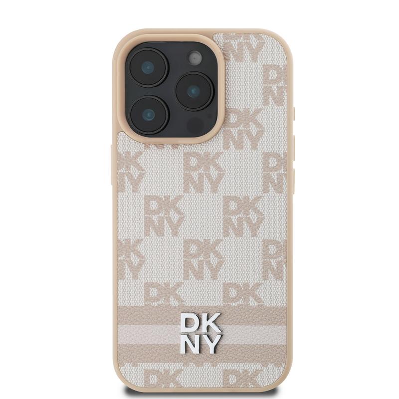 iPhone 16 Pro DKNY Kariertes Muster und Streifen Hülle - Pink
