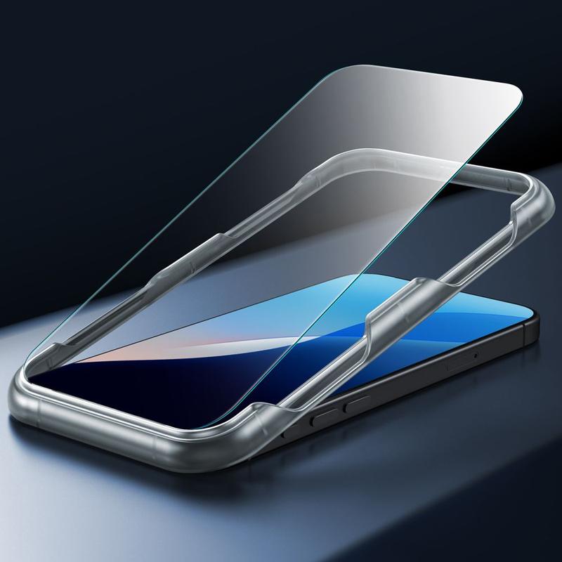 Die Installation des Glases ist extrem einfach - der im Set enthaltene Positionierungsrahmen erleichtert die Installation. Es ist die perfekte Kombination aus Komfort, Sicherheit und Funktionalität für Ihr iPhone 16 Pro.