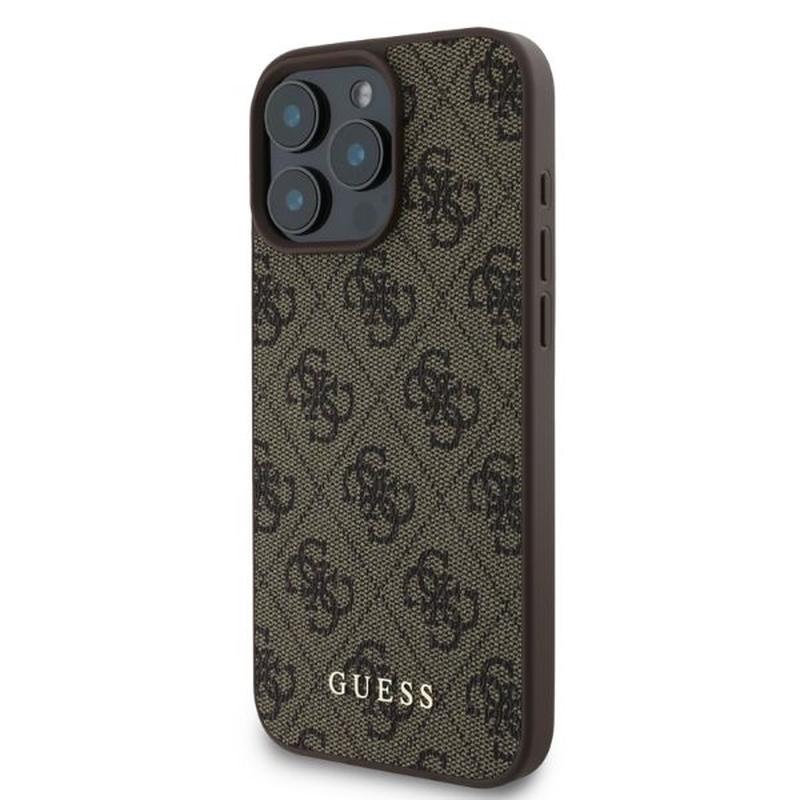 iPhone 16 Pro Guess 4G Metal Gold Logo Hybrid Hülle - Braun