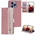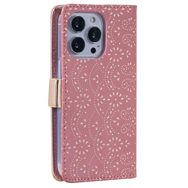 iPhone 16 Pro Lace Pattern Schutzhülle mit Geldbörse - Roségold