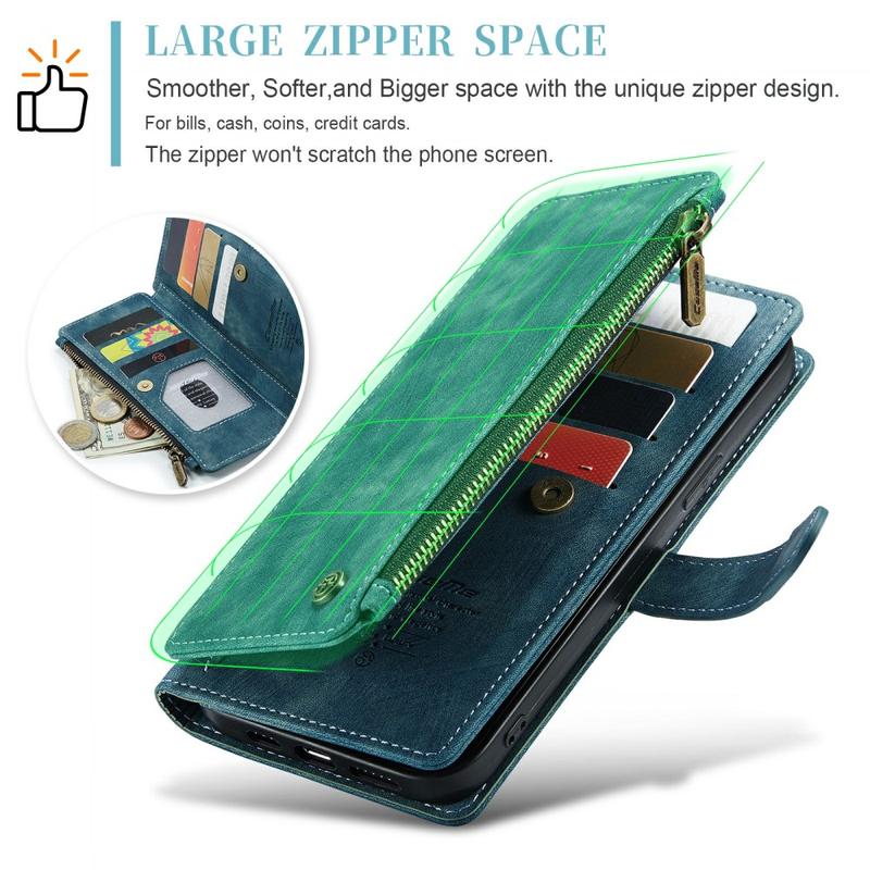 Die Caseme C30 multifunktionale Brieftaschenhülle für das iPhone 16 Pro Max bietet außergewöhnlichen Rundumschutz und ein exklusives, raffiniertes Design. Diese elegante Hülle besteht aus hochwertigem Polyurethan, verstärkt mit einer stoßfesten TPU-Innenhülle, die sich perfekt an Ihr iPhone 16 Pro Max anschmiegt. Die Caseme C30 Brieftasche ist mit zahlreichen Kartenfächern, einem großen Geldfach innen und einer Außentasche mit Reißverschluss ausgestattet, die alle durch einen sicheren Magnetverschluss geschützt sind.