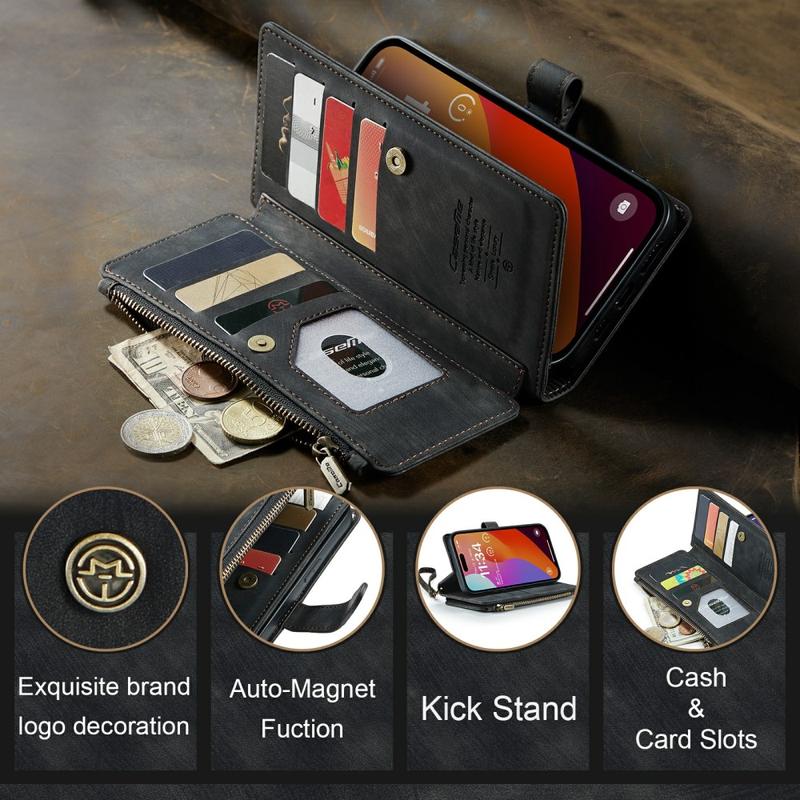 Die Caseme C30 multifunktionale Brieftaschenhülle für das iPhone 16 Pro Max bietet außergewöhnlichen Rundumschutz und ein exklusives, raffiniertes Design. Diese elegante Hülle besteht aus hochwertigem Polyurethan, verstärkt mit einer stoßfesten TPU-Innenhülle, die sich perfekt an Ihr iPhone 16 Pro Max anschmiegt. Die Caseme C30 Brieftasche ist mit zahlreichen Kartenfächern, einem großen Geldfach innen und einer Außentasche mit Reißverschluss ausgestattet, die alle durch einen sicheren Magnetverschluss geschützt sind.