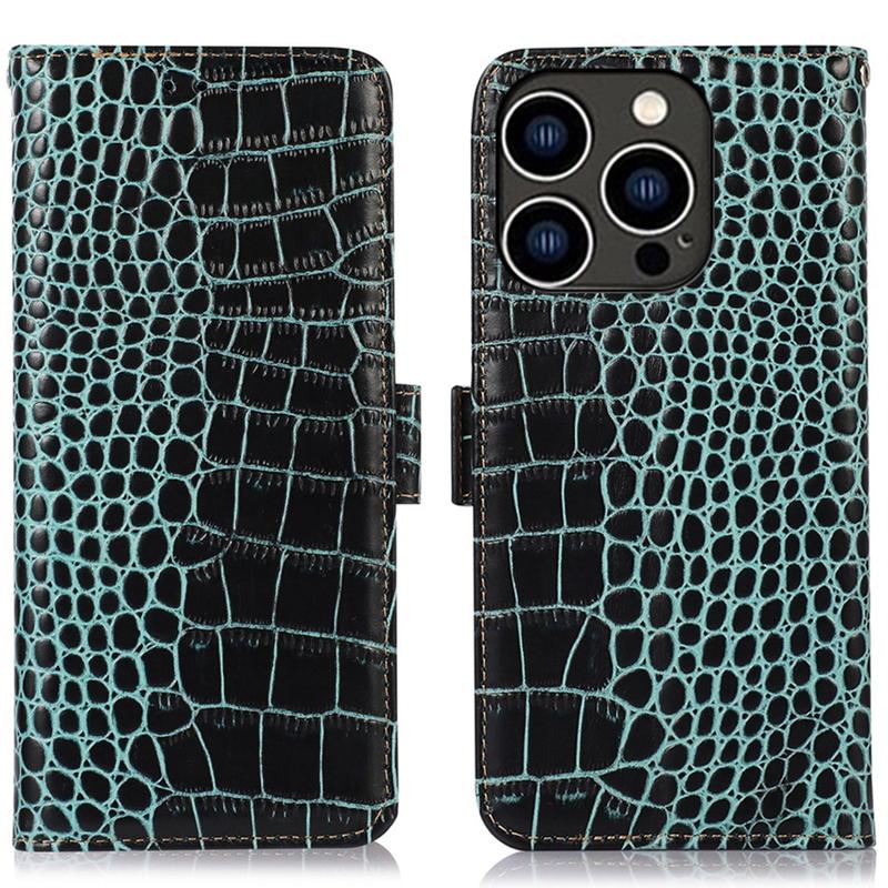 iPhone 16 Pro Max Crocodile Serie Lederhülle mit Geldbörse mit RFID - Grün
