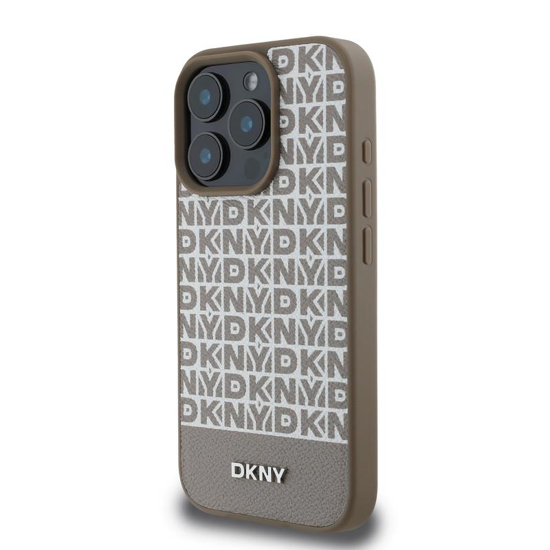 iPhone 16 Pro Max DKNY Repeat Pattern Bottom Stripe Hülle - MagSafe kompatibel - Braun