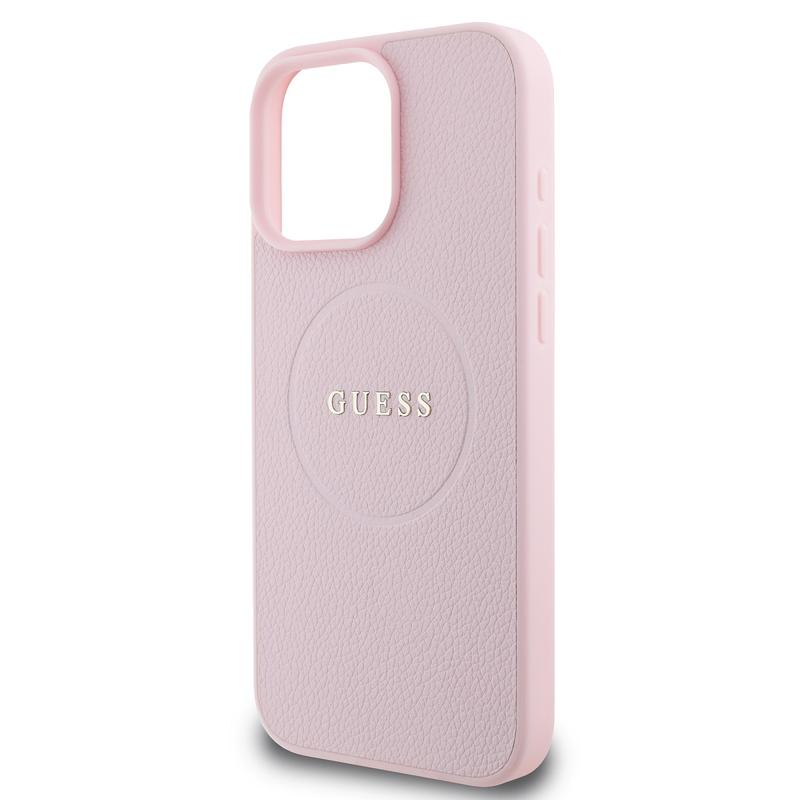 iPhone 16 Pro Max Guess Grained Classic Logo Hybrid Hülle - MagSafe-kompatibel - Rosa
