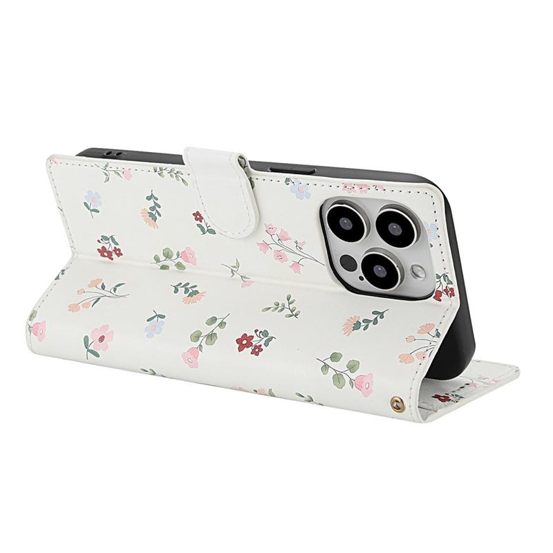 • Rhombisches Blumen Wallet Hülle für iPhone 16 Pro - mit Riemen und Kartenfächern