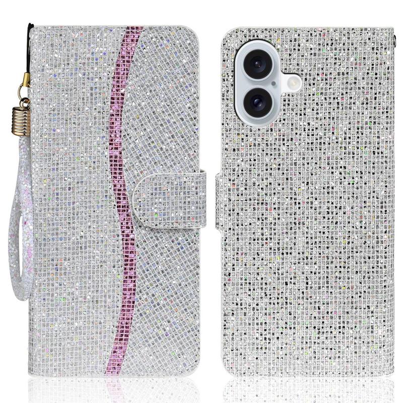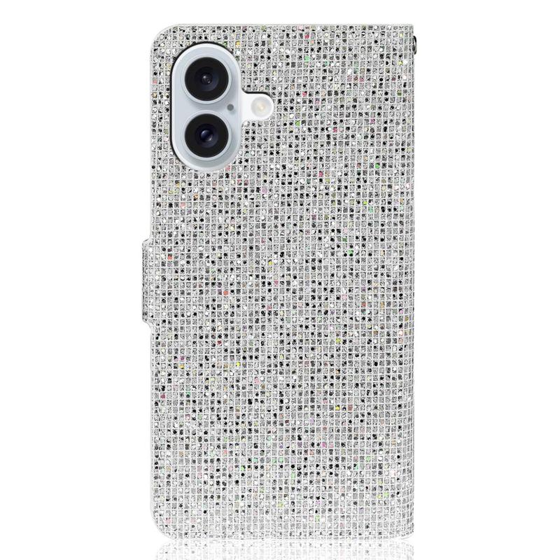 iPhone 16 Stilvolle Glitzer Wallet Hülle - Silber