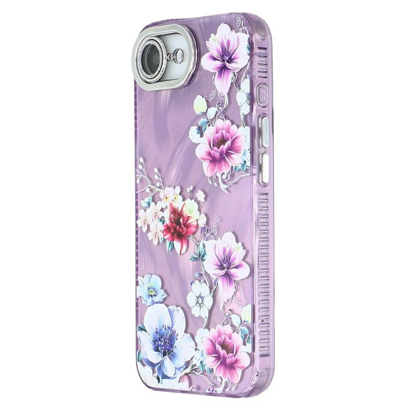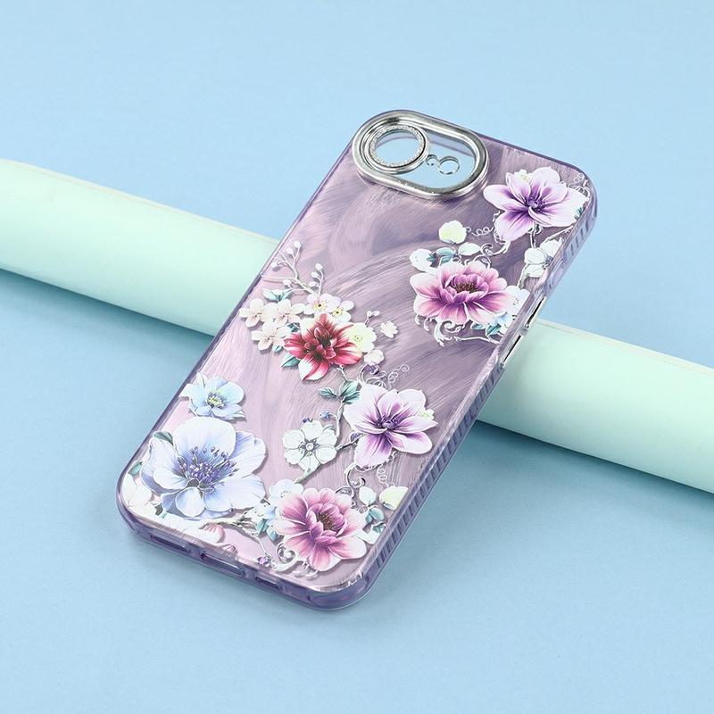 iPhone 16e Frühling galvanisiert IMD Hybrid Hülle mit Kamera Schutz - lila Blumen
